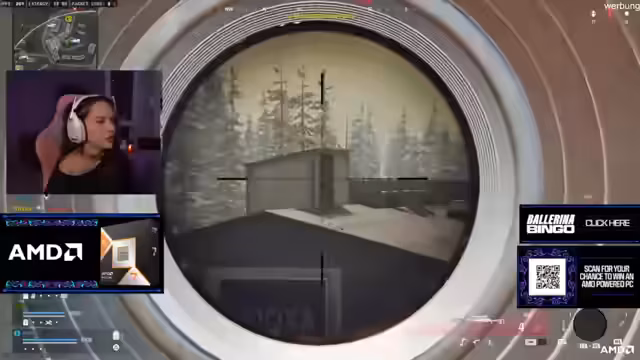 02:23:19Die Streamerin fasst kurz das aktuelle Turnierformat zusammen: Es ist ein Event von AMD und Call of Duty zur Feier der neuen Warzone-Season und des Films Ballerina. Sie wiederholt die Informationen zum AMD-Gewinnspiel, den Teilnahmebedingungen und die Gewinnchancen, die auch schon früher an die Community gingen. Zusätzlich geht sie detailliert auf die Specs des zu gewinnenden PCs ein, die neuen GPUs der 9000er-Serie und die leistungsstarke 9000er X3D CPU, die sowohl für Gaming als auch für Content-Erstellung ideal sei.