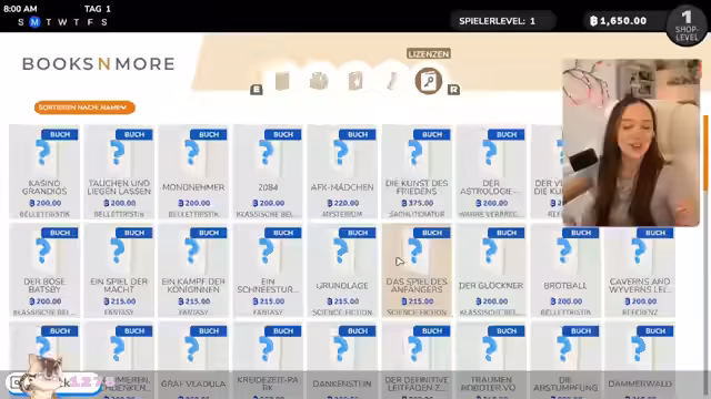 02:21:07Nachdem ein Heldel-Ringe-Buch verkauft wurde, wurden weitere Bücher gekauft und in den Regalen sortiert. Es gab die Idee, Mystery-Boxen zu eröffnen, und die Erwähnung von Mods im Steam-Workshop, die Katzen- und Hundepublikationen hinzufügen. Die Reiseziele des Spiels wurden diskutiert, wobei eine Reise nach Paris oder Japan für 3000 Euro in Betracht gezogen wurde. Das Ziel war, den Shop mit ausreichend Kapital auszustatten, um weitere Expansionen zu ermöglichen und die Kundenfrequenz zu erhöhen.