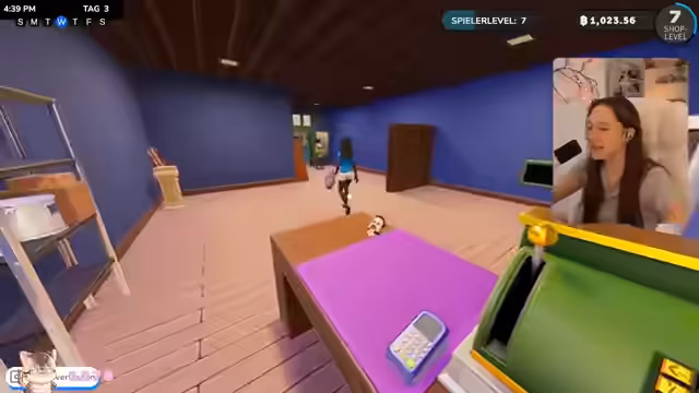 01:08:54Nachdem die Kasse läuft, widmet sich die Streamerin der Ladengestaltung. Es werden Möbel wie persönliche Regale und ein Mülleimer gekauft, um den Laden zu organisieren. Es wird entdeckt, dass man die Wände und das Layout anpassen kann, um eine ansprechendere Atmosphäre zu schaffen. Dabei werden strategische Entscheidungen getroffen, wo welche Regale platziert werden, um den Kundenfluss zu optimieren und Impulskäufe zu fördern.