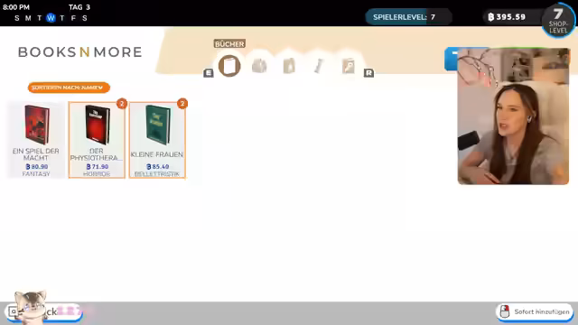 01:07:08Der Stream beginnt mit der Eröffnung eines Buchladens. Zunächst wird die Kasse eingerichtet, wobei es anfangs zu einigen Missverständnissen mit dem Wechselgeld und der Bedienung kommt. Es wird gelernt, wie man Artikel scannt und das Geld an Kunden zurückgibt. Der Fokus liegt darauf, den Laden zu bestücken und Geld zu verdienen, indem Bücher an Kunden verkauft werden. Das anfängliche Chaos der Kassenführung wird schnell gemeistert, um den Ladenbetrieb aufzunehmen.