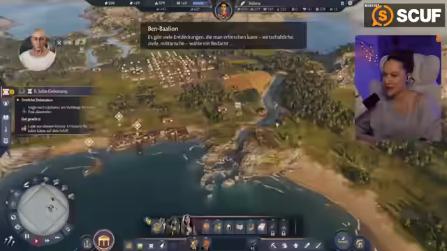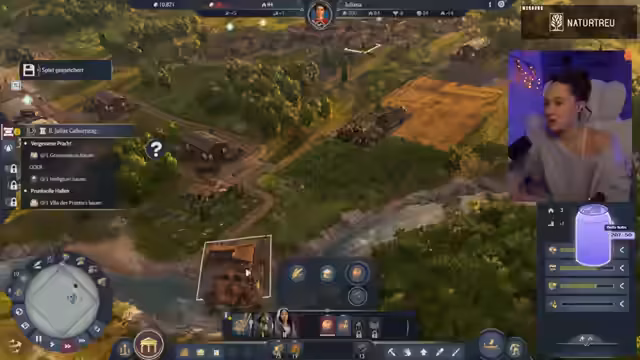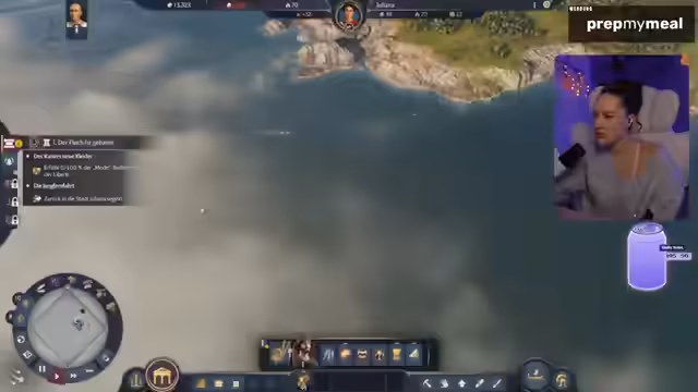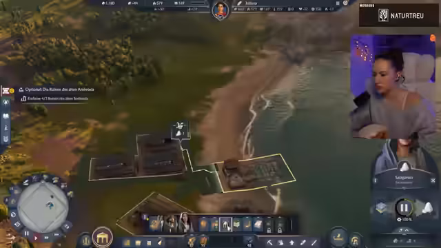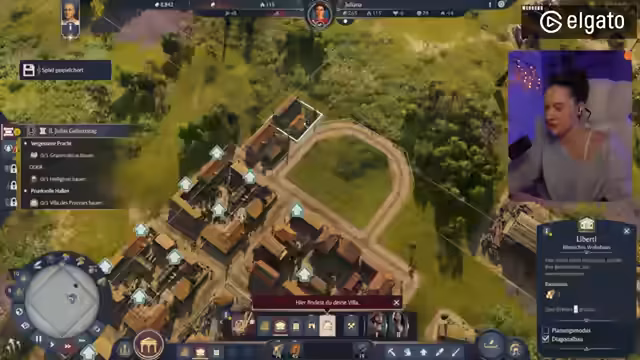 01:09:48Nach der Diskussion über persönliche Ängste und gesellschaftliche Themen leitet die Streamerin zum Hauptteil des Streams über: dem Spiel Anno 117: Pax Romana. Sie äußert ihre Vorfreude, aber auch eine gewisse Nervosität, da sie nicht weiß, was sie erwartet, und hofft, dass es nicht zu viele Schiffskämpfe geben wird, da sie diese in Spielen wie Assassin's Creed Black Flag nicht mochte. Es wird erklärt, dass es sich um einen Early-Access-Titel handelt und Zuschauer Drops erhalten können, wenn sie ihr Ubisoft-Konto mit Twitch verbinden. Die Streamerin passt die Grafikeinstellungen auf 'Ultra Hoch' an und entscheidet sich für den Kampagnenmodus, um sich zunächst mit dem Spiel vertraut zu machen. Sie stellt sich als Marcia Tertia vor, die Tochter eines Prätors, die eine Stadt aufbauen soll, da ihr zukünftiger Ehemann erkrankt ist. Die ersten Aufgaben umfassen den Bau von Holzfällern, Sägewerken und Wohnhäusern, wobei sie die Hilfe des Chats bei strategischen Entscheidungen in Anspruch nimmt.