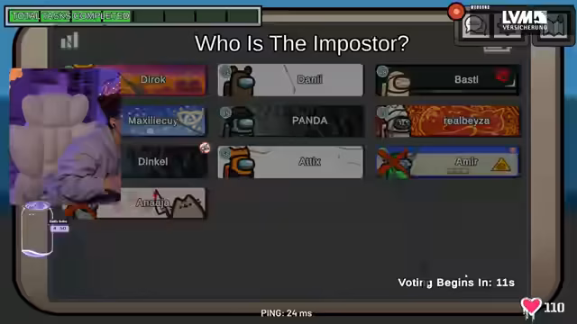05:24:38Ein Spieler versucht, einen Call zu machen, um Annika zu verteidigen, die verdächtigt wird, ein Imposter zu sein. Es wird behauptet, dass Annika einen Spieler vor einem Kill gerettet hat, indem sie ihn blockierte. Die Diskussion dreht sich um die Glaubwürdigkeit der Aussagen und die Möglichkeit, dass Dani und Annika Back-to-Back-Imposter waren. Ein Spieler bedauert, dass er einen anderen Spieler nicht rausbekommen konnte, was die Spannung im Spiel erhöht. Die Notwendigkeit einer VHR (Video-Replay) von Panda wird betont, um die Situation besser einschätzen zu können. Die Spieler versuchen, ihre Unschuld zu beweisen und andere zu verdächtigen, während die Aufgaben im Spiel voranschreiten. Die Situation wird als krank und verrückt beschrieben, da die Ereignisse unvorhersehbar sind.