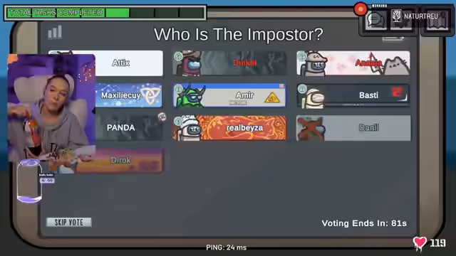 03:16:14Die erste Leiche wird gemeldet, was zu einer hitzigen Diskussion führt. Spieler wie Alika und Phil werden verdächtigt, während andere ihre Alibis darlegen. Es wird über Laufwege und Sichtungen in Medbay, Security und Camps debattiert. Die Runde ist geprägt von Verwirrung, da ein Shapeshifter im Spiel vermutet wird. Die Diskussionen drehen sich um die Frage, wer den Kill begangen haben könnte und ob es sich um einen Self-Report handelt. Die Spieler versuchen, die Bewegungen und Aussagen der anderen zu analysieren, um den Imposter zu entlarven. Die Spannung steigt, als ein Spieler sein Essen erhält, was die Konzentration kurzzeitig unterbricht. Die Runde endet mit der Eliminierung einer falschen Person, was die Verwirrung weiter verstärkt und die Suche nach dem wahren Imposter erschwert.