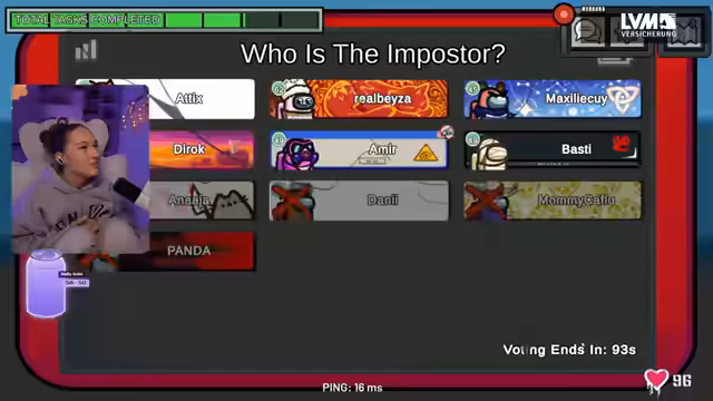06:01:48Eine letzte Runde beginnt, und die Spieler sind weiterhin auf der Suche nach Impostern. Die Lichter gehen aus, und es wird versucht, den Aufenthaltsort von Panda zu klären, der verdächtigt wird, ein Imposter zu sein. Die Leiche wird in Cafeteria gefunden, und die Diskussion dreht sich um die Bewegungen der Spieler und mögliche Shapeshifter. Annika behauptet, Panda auf einem Vent gesehen zu haben, während Panda dies bestreitet. Die Spieler versuchen, ihre Unschuld zu beweisen und andere zu verdächtigen, was zu weiteren hitzigen Debatten führt. Die Möglichkeit von zwei Impostern, einem Shapeshifter und einem Viper, wird in Betracht gezogen. Die Spieler sind frustriert über die mangelnde Kommunikation und das Misstrauen untereinander, was das Spiel schwierig macht.