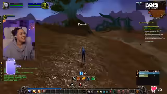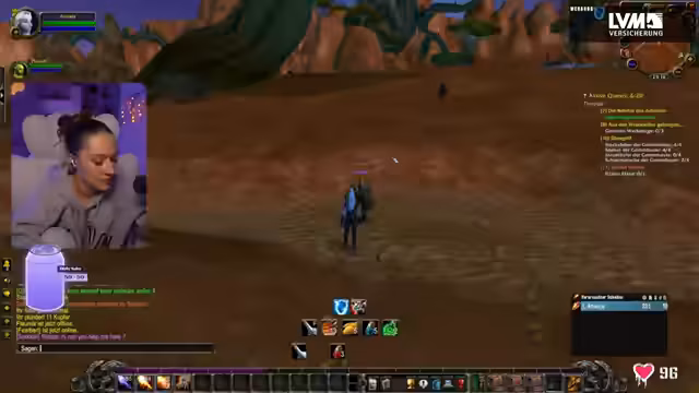06:34:09Die Streamerin und Yasmin begeben sich gemeinsam auf die Echo-Inseln, um die Quest „Aus den Wrackteilen geborgen“ und die Eier-Quest zu erledigen. Die Streamerin äußert ihren Unmut über die Inseln und erinnert sich an die Schwierigkeiten mit der Skorpion-Aufgabe vom Vortag. Sie arbeiten zusammen, um die Raptors und Voodoo-Trolle zu besiegen und die Eier zu finden. Während des Kampfes kommt es zu brenzligen Situationen, in denen sie sich gegenseitig unterstützen müssen, um nicht zu sterben. Die Streamerin bemerkt, wie schnell die Mobs respawnen und wie viele andere Spieler ebenfalls in diesem Gebiet questen, was die Suche nach den Eiern erschwert. Trotzdem meistern sie die Herausforderungen und sammeln die benötigten Gegenstände.
