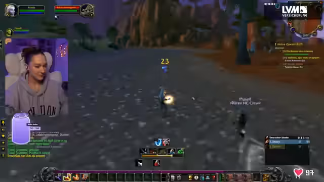 07:22:31Es wird über die Nutzungsgewohnheiten der Zuschauer gesprochen, wobei die Streamerin überrascht feststellt, dass viele ihren Stream auf dem Handy verfolgen. Der 'Übergriff'-Quest wird fortgesetzt, und ein weiterer Spieler wird in die Gruppe eingeladen, um die Quest gemeinsam zu absolvieren. Die Streamerin benötigt noch 'Schlachtwache, der Grimhauer' und 'Stabläufer' für die Quest und bittet den Chat, sie daran zu erinnern, Buffs für Jasmine zu kaufen. Es wird auch über die Herausforderungen für neue Spieler im Spiel gesprochen und die Hoffnung auf Unterstützung durch die Community.