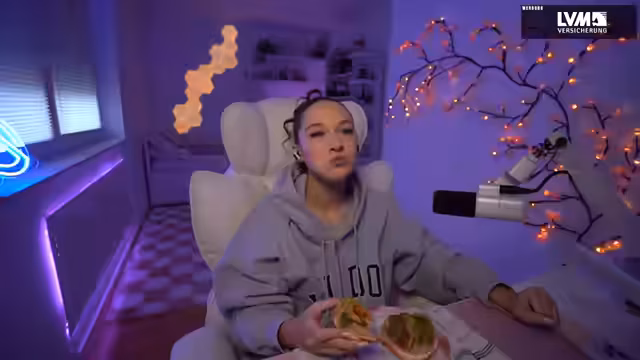 00:17:30Die Streamerin genießt ihr Essen, einen Bagel mit Avocado und veganem Aufschnitt, insbesondere einen neuen Curryputenaufschnitt, den sie sehr lobt. Anschließend wird das Kader für die anstehende Among Us-Runde bekannt gegeben, das aus D-Rock, Annika, Amir, Atix, Maxi, Basti, Baza, Panda, Dinkel und Dani besteht. Die Streamerin äußert Bedenken hinsichtlich der chaotischen Zusammensetzung der Gruppe, insbesondere mit Maxi, Basti, Panda und Dinkel in einer Lobby. Sie erwähnt auch, dass sie unberechenbar sei, was ihre Essgewohnheiten angeht. Eine Zuschauerin fragt nach ihrer Frisur, woraufhin die Streamerin verspricht, dazu ein Video aufzunehmen, da es ihre aktuelle Lieblingsfrisur ist, weil sie so unkompliziert ist.