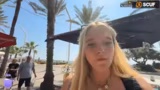03:04:32Der Spaziergang geht weiter in Richtung Wasser, wobei die Streamerin die besondere Architektur und die Atmosphäre beschreibt. Sie zeigt ein Hotel, von dem sie einen Balkonabsturz mitbekommen hat, und ist angetan von der Aussicht und dem Gelände. Sie äußert Bedenken bezüglich des Wassers und des Umweltschutzes und meint, dass man nur zum Urinieren ins Wasser geht. Anschließend findet sie einige Touristen attraktiv und beschreibt sie als 'Nature's Beauty'.