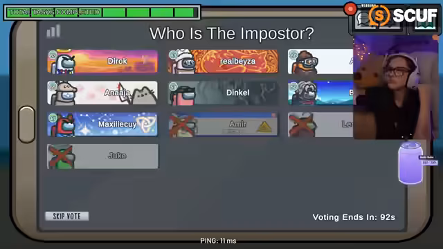 00:26:41Der Streamer geht ins Spiel Among Us über, wobei er den Ton des Streams vorerst auf Beleidigungen stellt, um sich von seinen emotionalen Problemen abzulenken. Er erwähnt, dass sein aktueller Zustand durch Tabletten beeinflusst ist und er einen etwas langsamen Geist hat. Das Spiel beginnt, und er versucht, sich als Crewmate in das Spiel einzubringen, muss aber feststellen, dass sein Puls-Sensor im Spiel nicht korrekt funktioniert, was zu Verwirrung und Frustration führt. Dennoch ist er froh, durch den Stream und die positive Energie der Community Kraft zu schöpfen.