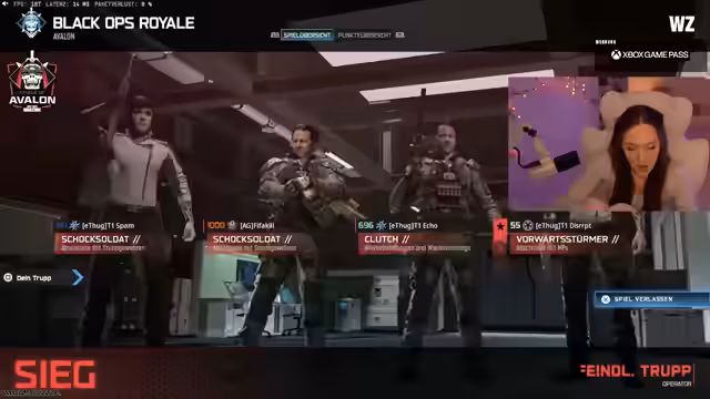 04:35:49In der letzten gezeigten Runde des Streams beginnt das Team bei Fire. Es kommt sofort zu heftigen Kämpfen, als feindliche Teams in der Nähe spawnen. Das Team kämpft sich auf die Brücke, wird aber von mehreren Seiten unter Druck gesetzt. Die Streamerin koordiniert ihre Mitspieler und versucht, die Gegner mit Unterstützung aus einem Helikopter und gezielten Attacken zu eliminieren. Die Runde ist geprägt von hohem Tempo und vielen Wechseln.