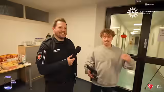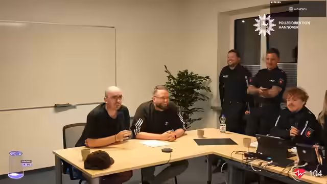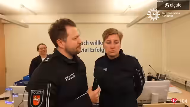01:03:21Die teilnehmenden Polizisten stellen sich vor und klären, dass es sich um echte Beamte der Landespolizei Niedersachsen handelt. Das Ziel des Streams ist, einen Einblick in die Behörde zu geben und das Auswahlverfahren transparent zu machen. Dabei wird auf die digitale Präsenz der Polizei eingegangen, um Nachfragen zu beantworten und Anlaufstellen zu vermitteln.