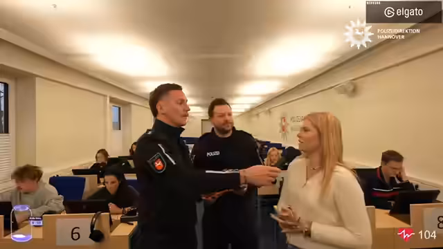04:12:33Die Uniform wird im Studium bezogen und jährlich Geld für den Kauf neuer Teile auf ein LZN-Konto überwiesen. Die Polizei Niedersachsen verlangt keine deutsche Staatsbürgerschaft für die Bewerbung, das Mindestalter ist 18, das Höchstalter grundsätzlich 32, mit Ausnahmen bis 35. Ein Bewerberinnen erleidet einen Schulterauskugelung während des Parcours, was live kommentiert und die Nachsorge organisiert wird. Die Person wird in die frische Luft begleitet und versorgt.