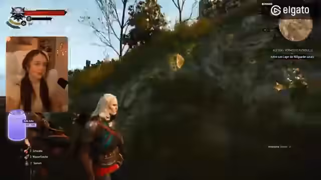 02:51:50Nachdem der Stream den bereits besuchten fetten Eichenbaum erwähnt, geht es in der Spielwelt weiter. Die Protagonistin plant, zum Wahrsager zu reisen, muss dafür aber einen Sumpf durchqueren und stellt dabei fest, dass sie sich aufgrund der Gewichtslast des Inventars nicht schnell reisen kann. Bei der Durchquerung des Sumpfs werden verschiedene Gegenstände ge lootet, darunter verbessertes Reliktöl, was als großer Gewinn gewertet wird, und sogar eine Quest betreffende Rüstung gefunden. Nachdem Inventarplatz geschaffen wurde, wird über die weiteren Pläne diskutiert, u.a. das Verkaufen von überflüssigen Gegenständen und das Finden von Werkzeugen für eine angenommene Quest.