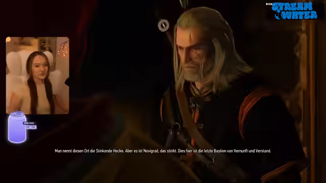 06:01:21Nachdem die Ratten verschwunden sind, folgt der Streamer der Spur eines Geisters im Haus eines Bankiers. Er trifft auf eine Göttling namens Pia, die Albträume verursacht, um das Haus zu räumen. Er erwacht aus dem Traum und redet mit einer Hexe, die ihm offenbart, dass Pia das Spukhaus erschaffen hat. Der Streamer erhält den Auftrag, Ciri zu finden und trifft auf eine Hexe, die ihn an die Ausbildung von Ciri erinnert und von ihrer unkontrollierbaren Macht erzählt.