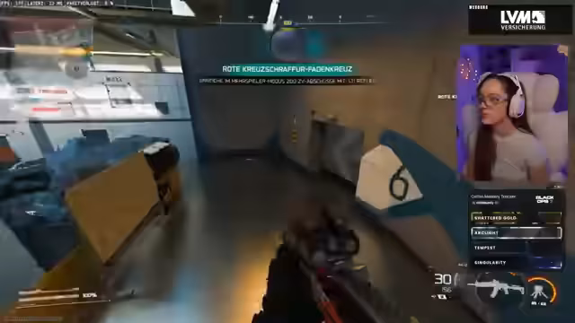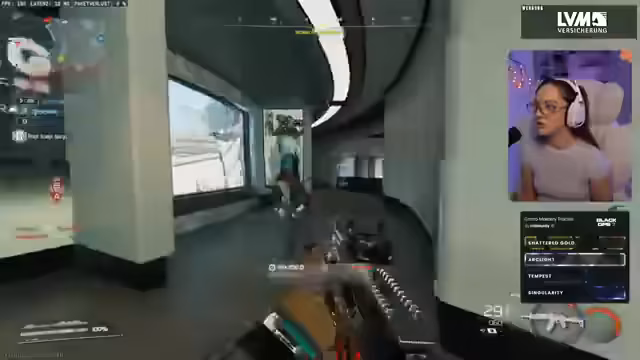 00:28:15Nach der erfolgreichen Einrichtung aller technischen Details beginnt der eigentliche Hauptinhalt des Streams: der Camo-Grind in Call of Duty Black Ops 7. Die Streamerin nutzt ein spezielles Overlay-Tool, um den Fortschritt der Camos und Prestiges live zu verfolgen. Dieses Tool zeigt den Status der aktuellen Waffe, den Fortschritt bei Shattered Gold und andere Statistiken an. Sie steigt mit ihrer Waffe, einer AK, ins Spiel ein und erkundet die Map, während sie das Spiel für ihre Zuschauer kommentiert.