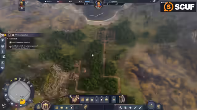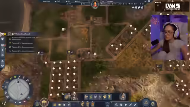 06:22:10Zu Beginn des Streamsabschnitts erkundet die Streamerin ein sumpfiges Gebiet, das als Startort für ihre neue Siedlung dient. Sie stellt fest, dass der Raum für Wohnhäuser sehr eingeschränkt ist, und beschließt, die Gebäude eng nebeneinander zu platzieren, wie sie es aus anderen Anno-Spielen gewohnt ist. Besonders positiv fällt ihr auf, dass in Pax Romana erstmals auch schräge Wege angelegt werden können, was ihr mehr Flexibilität im Bau gestattet.
