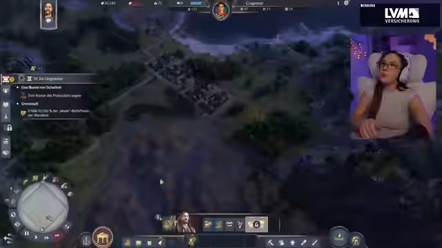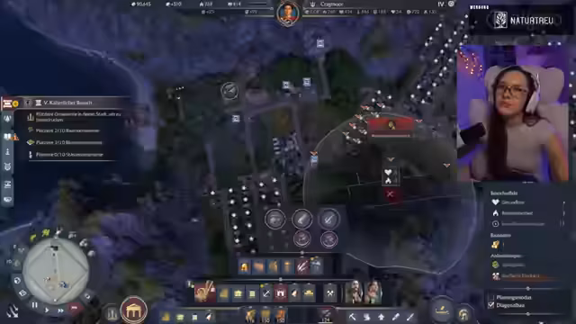 07:49:00Der Stream konzentriert sich auf den Aufbau und die Verwaltung der Stadt. Es werden grundlegende Strukturen wie die Kaserne, Wachtürme und Brunnen errichtet. Die Streamerin bemängelt die Platznot und den Mangel an wichtigen Ressourcen wie Zinn und Färberpflanzen, was den weiteren Ausbau der Wirtschaft, insbesondere der Schmieden, erheblich einschränkt. Sie muss sich stets um die Zufriedenheit der Bevölkerung kümmern, indem sie zufriedene Bauern und Schmiede sicherstellt.