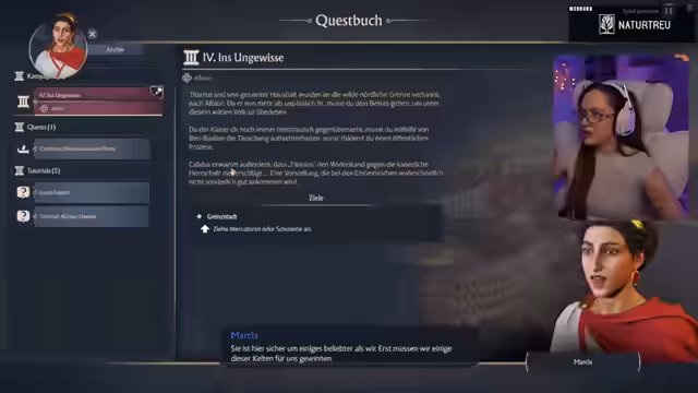 07:55:56Während des Militärbaus werden verschiedene politische Entscheidungen in Form von Quests vorgestellt, bei der die Streamerin zwischen Optionen mit unterschiedlichem Einfluss auf Ansehen und Zufriedenheit wählen muss. Sie plant den Bau der Villa des Praetors in der Nähe der Kaserne, um eine volksnahe Herrscherin zu sein. Der plötzliche Bau der Villa verursacht zunächst eine erneute Krise der Arbeitskräfte und der Zufriedenheit, die jedoch schnell behoben wird. Der Bau dient als Vorbereitung auf den bevorstehenden kaiserlichen Besuch.