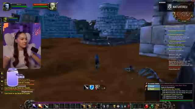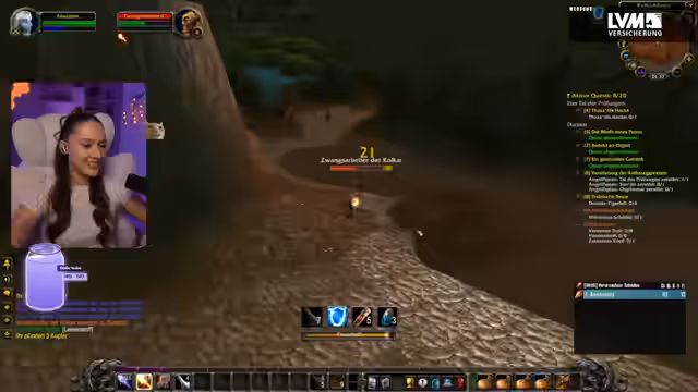 01:12:51Anfangs wird der Stream von der Überforderung geprägt, da dieStreamerin nach langer Zeit wieder in World of Warcraft Classic einsteigt. Sie muss sich erst mit der grundlegenden Steuerung vertraut machen und stellt fest, dass sich Charaktere nur mit der W-Taste vorwärts bewegen, während die restliche Bewegung per Maus erfolgt. Das Annehmen der ersten Quest 'Euer Platz in der Welt' wird aufgrund der ungewohnten Steuerung und der fehlenden Orientierung zur Herausforderung.