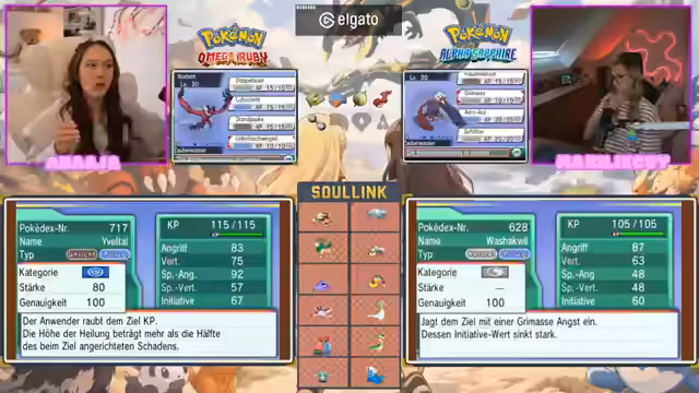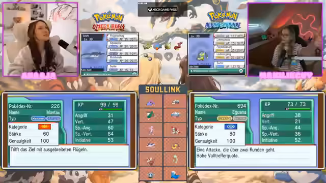 04:25:43Franz, ein Elektropokémon, wird nun entwickelt und lernt diverse Attacken wie Feuer-, Unlicht- und Psychoattacken. Der Streamer vergleicht die Stärken der Attacken Läuterfeuer und Glut und stellt fest, dass trotz Spezialattacke von Glut, Läuterfeuer als physische Attacke vorteilhafter sein könnte. Zudem wird die Weiterentwicklung von Eliseva mit der Fähigkeit Aura als sehr gelobt und als geiler Part des Teams angesehen.