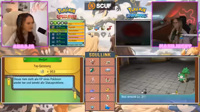 03:16:16Das neuste Elektro-Pokémon namens Hoden wird gelevelt, um es stärker zu machen. Die Streamerin ist jedoch frustriert, weil es kaum neue Attacken lernt. Die Zuschauer schlagen Attacken wie "Finale" und "Läuterfeuer" vor. Parallel dazu unterhält sich die Streamerin über persönliche Themen, wie ihren bevorstehenden Friseurtermin und mögliche Kinder-Namen.
