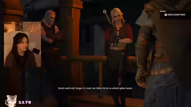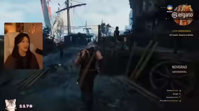 00:56:18Nach einem kurzen, leicht desorientierenden Start im Bordell von Novigrad gelingt es der Streamerin, Kontakt zu Triss aufzunehmen. Erste Informationen über die anderen Zauberinnen, Philippa Eilhardt und Kera, werden eingeholt. Es stellt sich heraus, dass Philippa gefangen genommen wurde. Geralt und seine Gruppe begeben sich daraufhin nach Kermorhin, um sie zu befreien und ihre Unterstützung für den Kampf gegen die Wilde Jagd zu sichern. Dort angekommen, stoßen sie jedoch auf Widerstand.