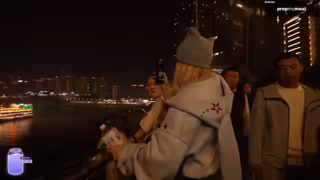 04:24:33Nachdem die Drohnenshow kurz unterbrochen wurde, wird ein Stativ aufgestellt, um die Show besser filmen zu können. Die Streamerin und ihr Begleiter posieren für Fotos und bewundern die Drohnenformationen, die sich über dem Wasser bewegen. Sie interagieren mit chinesischen Touristen, die ebenfalls die Show besuchen und aus weit entfernten Städten angereist sind. Die Streamerin ist beeindruckt von der Schönheit der Darbietung und der hohen Anzahl der Drohnen, die einen Weltrekord aufgestellt haben sollen. Es kommt zu einem kurzen technischen Problem mit einem Kabel, das repariert werden muss, während die Streamerin weiterhin die beeindruckende Atmosphäre und die Freundlichkeit der Menschen in Chongqing hervorhebt.