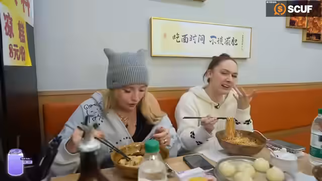 06:09:28Im Restaurant angekommen, genießt die Gruppe die lokale Küche, insbesondere die Chongqinger Nudeln und Dumplings. Die Streamerin lobt den Geschmack der Speisen und die freundliche Atmosphäre. Sie ist begeistert von den handgeschnitzten Stiften und den süßen Schalen mit Katzenmotiven. Allerdings bleibt die Internetverbindung ein wiederkehrendes Problem, was das Streamen und die Nutzung von Online-Diensten wie Alipay erschwert. Trotz der technischen Schwierigkeiten versucht die Gruppe, das Beste aus der Situation zu machen und die Mahlzeit zu genießen. Es wird über die Schärfe der Gerichte gesprochen, wobei die Streamerin feststellt, dass ihre Nudeln nicht so scharf sind, wie sie erwartet hatte, und sie zusätzlichen Essig hinzufügt. Die Gruppe reflektiert über die Einzigartigkeit der chinesischen Küche und die kulturellen Unterschiede, wie zum Beispiel die Seltenheit von Sprudelwasser in Asien.