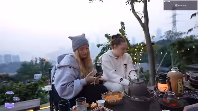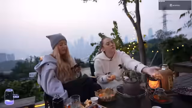 01:48:59Im Teehaus wird der Sonnenuntergang bewundert, der eine wunderschöne Kulisse bildet. Die Streamerin und Annika haben lange geschlafen und fühlen sich erholt. Die Vorschau des Streams funktioniert wieder einigermaßen, was die Stimmung hebt. Es wird über die Pläne für den Abend gesprochen: ein Besuch des Ultraschön-Tempels, eine Fahrt mit der Monorail und das Probieren der berühmten Chongqing-Nudeln. Zudem ist ein Besuch des Food-Markets und die Drohnenshow geplant. Die Streamerin und Annika diskutieren über die Reihenfolge der Aktivitäten, um alles unter einen Hut zu bekommen. Es wird auch über die Möglichkeit gesprochen, ein 4K-Food-Video für YouTube zu produzieren.