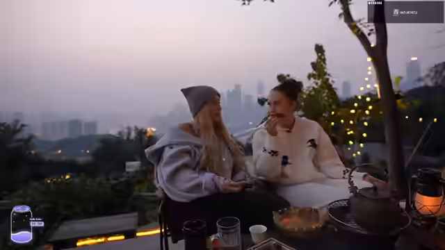 00:13:46Die Streamerin befindet sich mit Begleitpersonen in einem traditionellen chinesischen Teehaus mit beeindruckender Skyline. Sie bestellt traditionellen Tee und Barbecue, während sie die Aussicht geniest. Dabei wird die ungewöhnliche Atmosphäre geschildert, einschließlich eines süßen Hundes im Raum. Die Streamerin drückt ihre Freude über diese besondere Location aus und erwähnt, dass sie genug Raum und eine eigene Plattform haben, um niemanden zu stören.