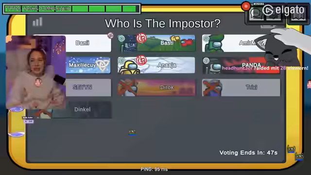 02:47:34Panda wird schließlich als Impostor entlarvt und eliminiert. Der Streamer beschreibt den Moment, in dem er Panda in den Camps angreift und tötet, nachdem dieser sich verdächtig verhalten hatte. Es kommt zu hitzigen Diskussionen und Vorwürfen, insbesondere weil Annika Panda zuvor verteidigt hatte und sich nun in einem Zwiespalt befindet. Die Situation eskaliert, als die verbleibenden Spieler sich gegenseitig beschuldigen und sich nicht mehr auf die Spielstrategie konzentrieren können.