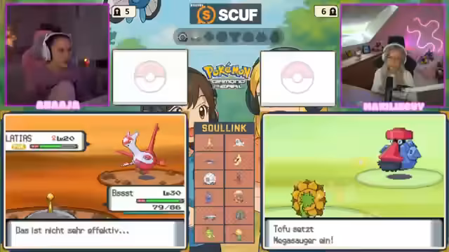 06:18:57Die Streamerin befindet sich in der Arena und bittet um Unterstützung bei den Kämpfen, da ihre Pokemon-Levels stark variieren und einige zu schwach für den Leader sind. Sie hat Bedenken, das Team komplett zu verlieren, und es kommt zu einer Diskussion, welches Pokemon eingesetzt werden soll. Sie entscheidet sich für Klumpen mit der Attacke Intensität, der als MVP gefeiert wird, nachdem er einen Gegner besiegt hat.