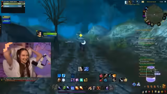 10:15:00Nach dem Dungeon enden Diskussionen über Quests: Ashenvale als nächstes Ziel, Furborg-Verwandlungs-Quest (XP statt Belohnung bevorzugt) und gefährliche Quests wie 'Style-Warn'. Die Streamerin erklärt, WoW sei das einsteigerfreundlichste MMO – auch in Classic. Sie leveln aktuell nur für Story, verzichten auf Raids wegen Zeitmangel. Das Light of Elune (Schutz-Item) wird als nützlich für Hardcore erwähnt.