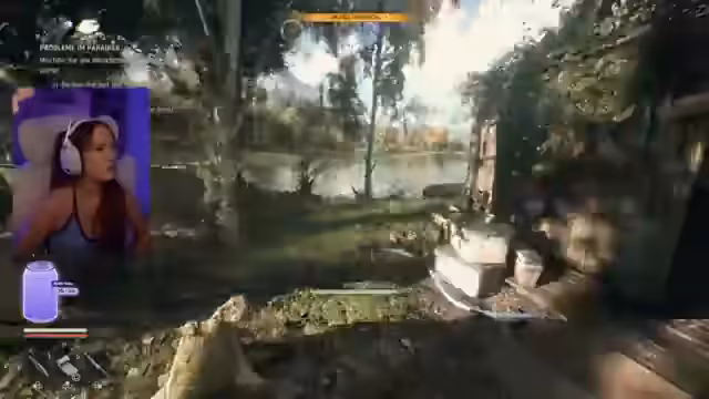 02:09:25Nachdem der Streamer den ersten Verstärker erfolgreich gefunden hat, macht er sich auf den Weg zum nächsten Sendeturm im Industriegebiet. Unterwegs nimmt er eine weitere Nebenquest an, die ihn zur Insel des Paradieses führt. Dort soll er alle Infizierten töten und die Infektionsquelle beseitigen. Mission ist jedoch schwierig, da er sich selbst versehentlich ansteckt und gezwungen ist, sich heilend ins Wasser zu begeben.