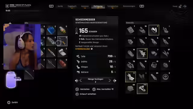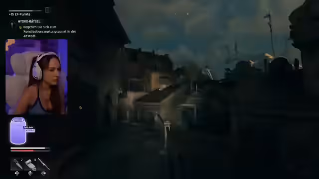 01:57:14Der Streamer nimmt mehrere Nebenquests an. Eine davon besteht darin, für eine trauernde Frau eine Spieluhr zu finden und sie auf dem Grab ihres Mannes zu platzieren. Eine andere Quest führt ihn zur Schweinefarm, wo er gefangene Teammitglieder befreien soll. Um den Plan umzusetzen, benötigt er ein Gerät, um die verschlüsselten Transmitter des Barons zu knacken, das er bei einer Patrouille klauen muss. Die Suche gestaltet sich jedoch schwierig und er verliert im Kampf wertvolle Gesundheit.