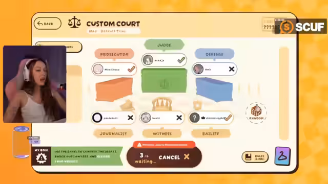 00:11:56Ein Spiel wird gestartet und die Rollen werden per Zufall verteilt. Die Streamerin übernimmt die Rolle des Staatsanwalts, während Maxi der Verteidiger wird. Die Anklage lautet, dass eine Spielerin namens Annika in einem Warzone-Tournament betrogen haben soll. Der Staatsanwalt legt mehrere Beweise vor, darunter ein kaputtes Handy mit Beweisen für den Kauf von Cheats und eine handschriftliche Notiz mit gefälscheten Statistiken. Die Verteidigung bestreitet die Anklage und argumentiert, ihre Mandantin sei während der Tatzeit in einem Aufzug ohne Empfang gewesen.