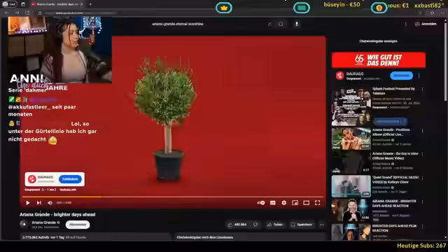 00:40:22Die Streamerin stellt das Album 'Eternal Sunshine' von Ariana Grande vor und spricht über ihre Vorfreude auf die Deluxe-Version. Sie zeigt ein Musikvideo des Titelsongs 'We Can't Be Friends' und erklärt die Anspielungen auf den Film 'Eternal Sunshine of the Spotless Mind'. Die Streamerin ist begeistert von der künstlerischen Leistung von Ariana Grande und zeigt ihre Bewunderung für ihre Musik und ihre Art, Musikvideos zu gestalten.