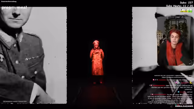 03:45:13Die historische Erzählung wird mit der Person Axel Freiherr von dem Busech fortgesetzt, der aufgrund seines idealen NS-Aussehen als Attentäter auserwählt wird. Dieser Plan scheitert aufgrund eines bombardierten Eisenbahnwagens. Die Streamerin unterbricht die ernste Thematik, indem sie persönliche Erlebnisse teilt, die durch Alkohol ausgelöste Aggression und emotionale Reaktionen beschreibt. Danach wird auf ein historisches Dokument, den Stiefel als Attentäter, Bezug genommen, das die Widerstandsgruppe in der Nähe von Salzburg porträtiert.