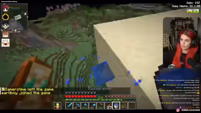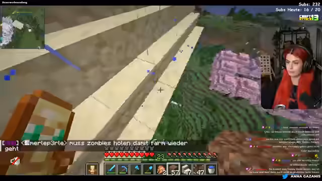 04:03:37Die Streamerin versucht, in Minecraft eine Treppe zu bauen, stößt dabei aber auf Schwierigkeiten. Sie versteht nicht ganz, wie sie die Treppe richtig platzieren soll, und beschreibt den Prozess als 'dumm' und 'kompliziert'. Es wird deutlich, dass sie mehr Minecraft spielen müsste, um solche Bauprojekte einfacher zu bewältigen. Sie fragt sich, wie sie einen 'Happy Guest' oder 'Special Guest' bekommen kann, um ihr zu helfen, und überlegt, ob sie jemanden dafür bezahlen müsste. Die Streamerin stellt fest, dass die Treppe breiter sein muss, wahrscheinlich mindestens vier Blöcke pro Seite. Sie zögert, jemanden um Hilfe zu bitten, da sie sich nicht traut. Es wird auch über Materialmangel gesprochen, insbesondere Sand, den sie erst wieder besorgen muss. Während des Baus kommt es zu weiteren Problemen, wie einer offenen Tür und dem Verlust von Farmen, was zu Frustration führt. Die Streamerin sucht nach 'Paleholz' und fragt die Zuschauer, wo sie es finden kann, da sie die Karte nicht öffnen kann, um nicht von einem 'Kuiper' in die Luft gesprengt zu werden. Sie beklagt sich über die 'Drecksfarmen' und das neue Update, das ihr den Schlaf raubt. Trotz der Schwierigkeiten findet sie ein Biom, das sie abbauen möchte, und stellt fest, dass es nicht so gruselig ist, wie sie dachte.