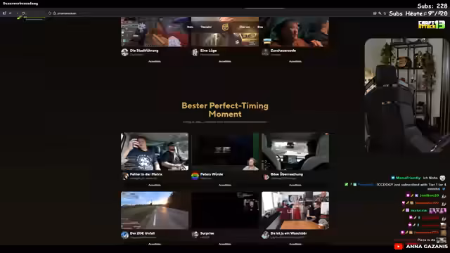 02:48:56Die Kategorie 'Schlimmste Versprecher' wird vorgestellt, wobei ein legendärer Clip von 'Rewinside' gezeigt wird, der in einem 13-Stunden-Stream versehentlich sagt, sein Hund 'stirbt friedlich', anstatt 'schläft friedlich'. Dieser Versprecher sorgt für allgemeine Belustigung. Die Kategorie 'Bester Fail Moment' folgt, mit einem Clip, in dem 'Max' Hilfe braucht, nachdem er wie eine Schildkröte auf dem Rücken liegt und sein 'Wurm' kaputt ist. Die Streamerin kommentiert die Situation humorvoll und die Wut von 'Max' auf 'Strobel'. Ein weiterer Clip zeigt einen Jumpscare, bei dem ein Streamer unerwartet springt und vom Stuhl fällt, was als 'Show' und 'geisteskrank' beschrieben wird. Die Reaktionen der Streamerin auf diese Clips reichen von Lachen bis zu Unglauben, was die Unterhaltsamkeit dieser Momente unterstreicht.
