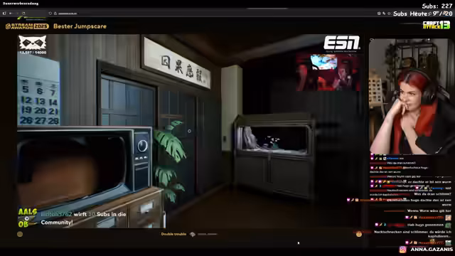 02:56:39Die Streamerin äußert ihren Unmut über einen Teampartner, der scheinbar unüberlegt in eine Falle läuft, was zu einem frühen Rückschlag im Spiel führt. Sie sitzt bereits dreiviertel Stunde und freut sich auf die Zusammenarbeit, nur um dann enttäuscht festzustellen, dass der Partner in das erste sichtbare Loch fällt. Dies führt zu einem Spielstand von 3 zu 1. Die Situation wird als 'krass' beschrieben, und sie fragt sich, ob der Partner anwesend ist, da sie keine Reaktion hört und pantomimisch agieren muss. Es wird vermutet, dass der Partner Wasser trinkt, bevor der eigentliche Start des Spiels bei 3, 2, 1 erfolgt. Die wiederholte Frage nach der Anwesenheit und das Ausbleiben einer Antwort verstärken die Frustration.