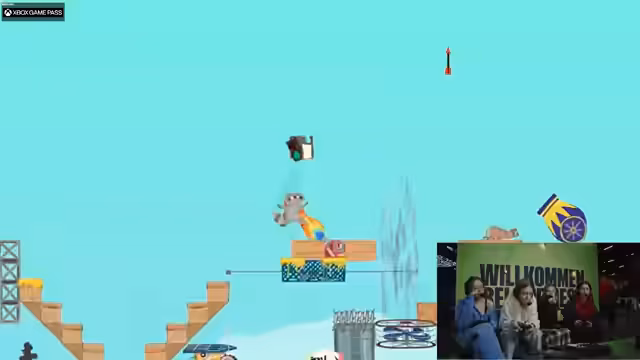 01:35:40Nachdem sich alle Anwesenden im Spiel Ultimate Chicken Horse verbunden haben, beginnt der Stream damit, die finalen Tests für das Mikrofon-Setup durchzuführen. Die Streamerin stellt fest, dass die Tonqualität weiterhin problematisch ist, doch es wird gespielt. Der Stream endet mit der Vorstellung des Ausrufezeichen Game Pass, den sie als großartiges Feature hervorhebt, und die Stimmung ist trotz anfänglicher technischer und organisatorischer Hürden positiv und ausgelassen.