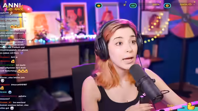 00:50:39Die persönlichen Pläne für das Auto nehmen eine sehr ausgeprägte Form an. Die Streamerin möchte ihr künftiges Fahrzeug komplett in pink gestalten und ein 'Tussimobil' daraus machen. Sie beschreibt detailliert ihre Vision: von pinken Überziehern über ein pinkes Lenkrad bis hin zu vielen Sticker und Figuren wie einem Barbie-Anhänger oder einem Labubu. Das Ziel ist bewusst kitschig und auffällig, um eine maximale Reaktion bei Betrachtern hervorzurufen und die eigenen Klischees bewusst zu spielen.