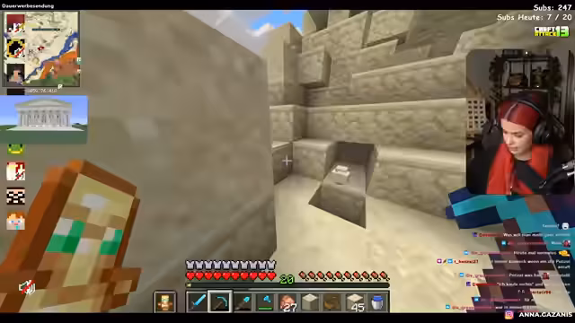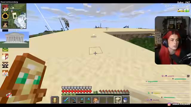 02:00:10Die Streamerin bietet an, Totems gegen Emeralds oder Diamanten zu tauschen, da Anna ihr bereits in der Ancient City geholfen hat. Es wird nach dem In-Game-Wohnort gefragt, und die Streamerin gibt an, eine eigene Base mit Tashi zu haben, abseits des Golem-Projekts. Sie war auch bei einem früheren Projekt nicht aktiv dabei, da sie die letzten zwei Jahre nicht richtig präsent war. Die Streamerin studiert derzeit und schreibt ihre Masterarbeit über KI, weshalb sie sich gut mit den Auswirkungen von KI auf den Arbeitsmarkt auskennt. Sie nimmt sich eine zweiwöchige Pause von der Arbeit, um sich Craft Attack zu widmen, da es wichtig ist, auch mal eine Auszeit zu nehmen. Die Streamerin hat ihren Job für Craft Attack gekündigt und befindet sich im längsten Urlaub ihres Jahres. Es wird humorvoll über mögliche Reiseziele wie den Nether oder die Enddimension gesprochen. Die Streamerin fragt, wer ein Totem für sie bezahlt hat, da sie die Namen manchmal verwechselt. Es wird erwähnt, dass es ruhig ist, wenn Metashi gemutet ist, und er sich regeneriert. Die Gruppe befindet sich in Stegis Base, und es wird über eine mögliche Kooperation mit Stegi gesprochen, da sein YouTuber-Kanal ähnlich aussieht. Schafe werden für Wolle benötigt. Die Streamerin muss in die XP-Farm, um ihre Sachen zu leveln, und plant, später Bäume abzubauen, um Emeralds für Upgrades zu erhalten. Es wird über einen „OP-Bogen“ gesprochen, und die Streamerin ist verwirrt, da sie an einen normalen Bogen denkt. Sie erhält selbstgemachte McMuffins als Essen und zeigt diese begeistert. Ein Reel, das sie auf Instagram hochgeladen hat, erhielt dort nur 100 Aufrufe, auf Facebook jedoch eine Million, was sie überrascht. Sie erhält weitere Totems und bedankt sich dafür. Die Streamerin hat immer noch keinen Hunger und fragt, ob ihr Körper aufgrund des geringen Essens nicht mehr richtig funktioniert. Sie gönnt sich Moltebeeren-Marmelade, die sie als exotisch beschreibt und die einen leicht bitteren Geschmack hat. Sie fragt die „Essensexperten“, was sie essen soll, und erhält Vorschläge wie M&M's, Kinderriegel, Brot, Brötchen, Schokobrezeln, Instant Ramen und Toastkäse. Sie bereitet Instant Ramen mit Wasser in einer Schüssel zu.