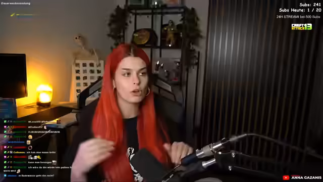03:17:32Die Streamerin bittet ihre Mitspieler, nicht zu schlafen, um ein 'Creaking' für Paul Fregeran zu bekommen. Sie gibt zu, dass sie zuvor nur aus Spaß geschrieben hat, dass sie schläft, um zu trollen. Sie erwähnt, dass sie und andere Spieler sich schon seit fünf Nächten bemühen, die Rüstung für Paul zu bekommen, aber er immer wieder schlafen geht. Sie scherzt darüber, dass das Dorf im Sexhain sei und dass niemand wirklich schläft, sondern alle nur trollen. Die Situation führt zu weiteren humorvollen Kommentaren und Interaktionen zwischen den Spielern, die versuchen, Paul davon abzuhalten, schlafen zu gehen, um das gemeinsame Ziel zu erreichen.
