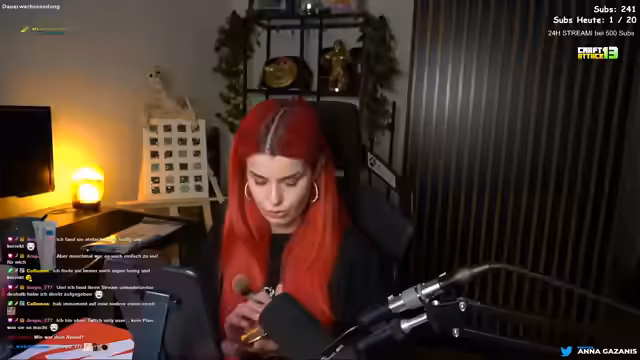 01:11:48Die Streamerin beendet ihre Schminkroutine mit dem Auftragen von Wimperntusche und dem Highlighten ihrer Wangen. Sie fragt nach aktuellen Octagon-Events und erfährt, dass ein Kampf in Brün, Tschechien, stattfindet. Sie erwähnt, dass Dani, ihr Partner, die Stimmung bei Kämpfen in Tschechien als viel besser empfindet als in Köln. Die Streamerin überlegt, ob sie Minecraft oder Battlefield spielen soll, entscheidet sich aber auch dafür, ins Fitnessstudio zu gehen, um ihre Haare zu waschen. Dies ist eine bewusste Entscheidung, da sie rote Haare hat und ihr eigenes Badezimmer nicht mit Farbe verschmutzen möchte. Sie beschreibt die Herausforderungen der Haarpflege mit roten Haaren und die Spuren, die diese auf Fliesen hinterlassen können. Ein geplanter Prank an Dani wird enthüllt: Sie möchte eine braune Perücke bestellen und ihn damit überraschen, dass sie ihre Haarfarbe geändert hat. Die Streamerin betont, wie wichtig ihr ihre Haare sind und dass sie sich niemals für Geld eine Glatze schneiden würde, es sei denn, es handle sich um eine Million Euro.