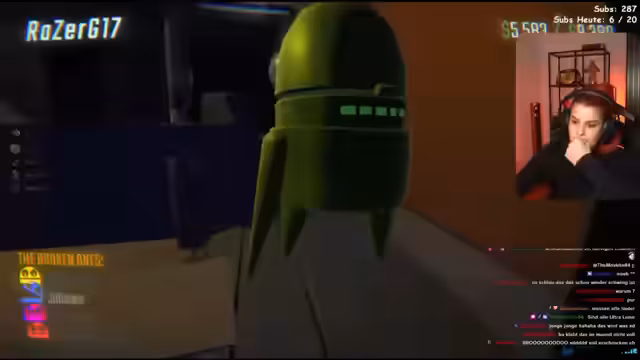 01:40:33Zu Beginn des Streams startet die Streamerin ein unbekanntes Spiel, das dem Genre "Among Us" ähnelt. Sie ist sich der Mechanismen, wie das Schleichen mit der Q-Taste, noch nicht sicher und wird von Chat-Teilnehmern instruiert. Zentrales Problem ist die Kommunikation: Die Streamerin hört nur sich selbst, während andere Spieler wie Razer für sie unhörbar bleiben. Das Ziel des Spiels scheint das Finden von Gegenständen zu sein, während man vor Monstern und Gegnern verstecken muss.