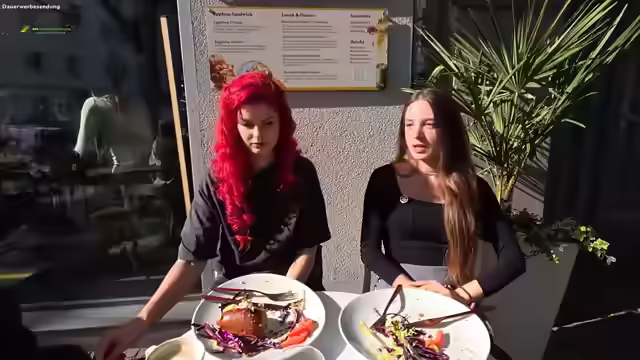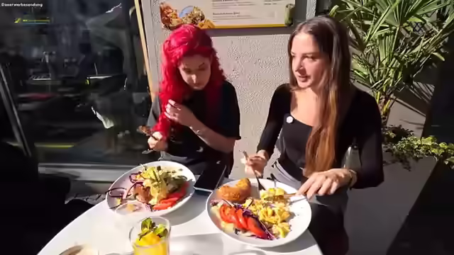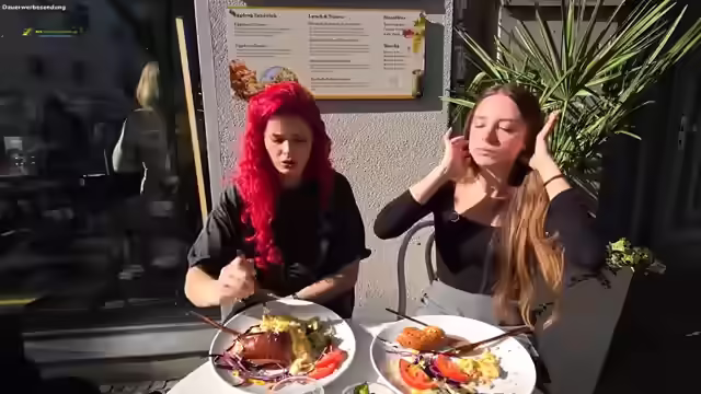 00:56:12Die Streamerin und Sally sind auf dem Weg zu einem Café und diskutieren über verschiedene Imbisse und Restaurants in Berlin. Sie sprechen über die Normalität des Streamens in Berlin im Vergleich zu anderen Orten. Die Streamerin erwähnt, dass sie in Berlin nicht so auffällt wie anderswo. Sie und Sally erreichen das Café und suchen einen geeigneten Platz zum Streamen. Es wird überlegt, ob der Tisch wackelt und ob das Licht für den Stream passt. Die Streamerin passt den Titel des Streams an und verlinkt Steli. Es gibt technische Probleme mit den Mikrofonen, die aber behoben werden können. Die beiden bestellen Getränke und Speisen. Die Streamerin bemerkt, dass ihr Handy warm wird und befürchtet eine Überhitzung. Sie überlegen, im Notfall nach drinnen zu gehen. Die Streamerin zeigt sich unentschlossen bei der Essensauswahl, entscheidet sich dann aber für ein Eggdrop Classic, während Sally Rührei mit Avocado bestellt.