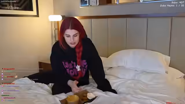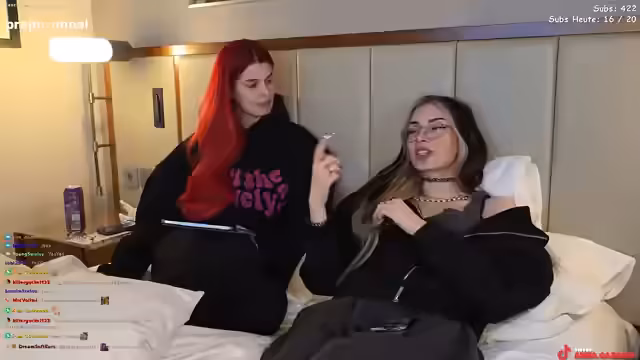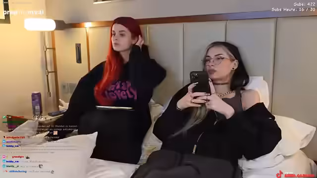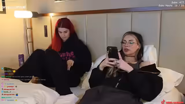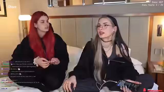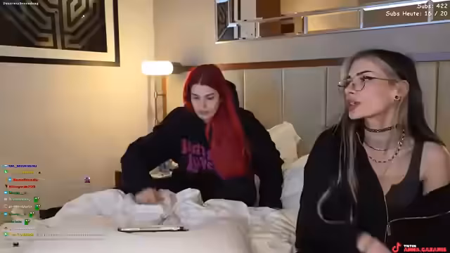 00:00:09Der Stream beginnt mit technischen Herausforderungen. Anna und ihr Gast, @babybouge, starten im Hotelzimmer und müssen zuerst die Mikrofone und die Streaming-Software einrichten. Sie nutzen die Funktion Stream Together, um den Chat beider Streamer zu vereinen. Zunächst gibt es Probleme mit der Bildschärfe und der Beleuchtung, die durch die Umstellung der Kameraposition und das manuelle Ausrichten der Lichtverhältnisse behoben werden. Die beiden tauschen sich über das schlechte Hotel-WLAN und ihre allgemeine Unzufriedenheit mit der Situation aus.