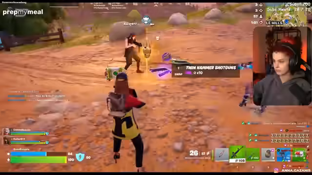 01:46:28Der Stream beginnt mit der Landung in der Mitte der Karte, die versehentlich eine Zone aktiviert. Dies führt zu einem rasanten Spielstart, bei dem die Spieler durch Fallen und unübersichtliche Gegner-Positionen schnell ins Wanken geraten. Während des Spiels werden technische Probleme mit der Verbindung zu den Bots des Teamkollegen bemängelt und über Server-Verzögerungen geklagt.